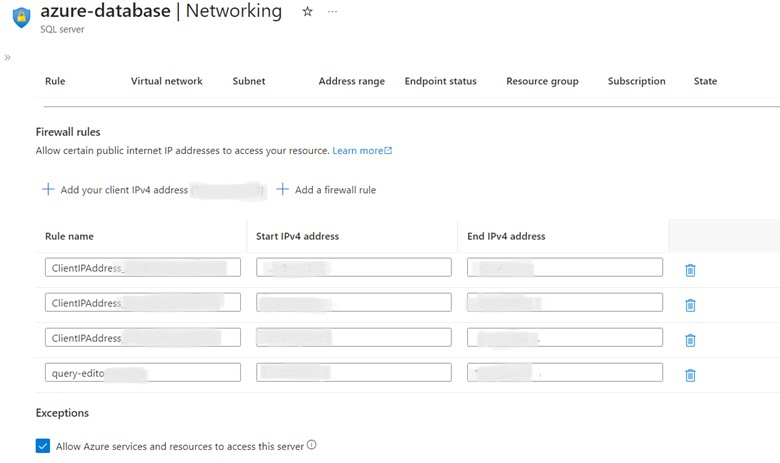 - In the overview section, click “Set Firewall networks,” add the client’s address, and save the changes.