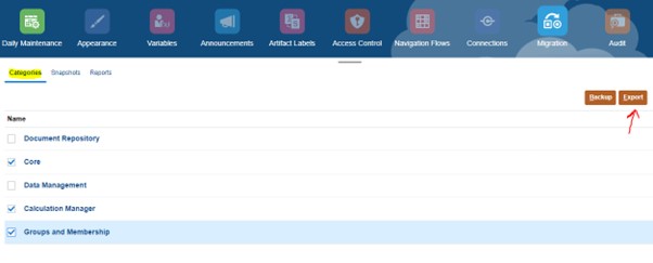 Step-1: Once logged in to PBCS, click on the “Tool” tab and then click on the Migration tab as seen below fig.